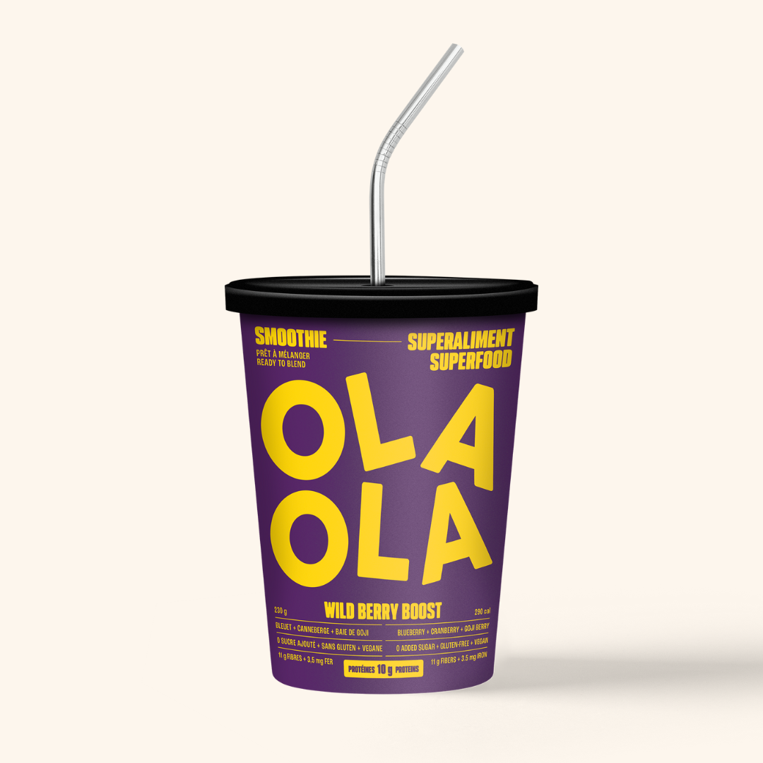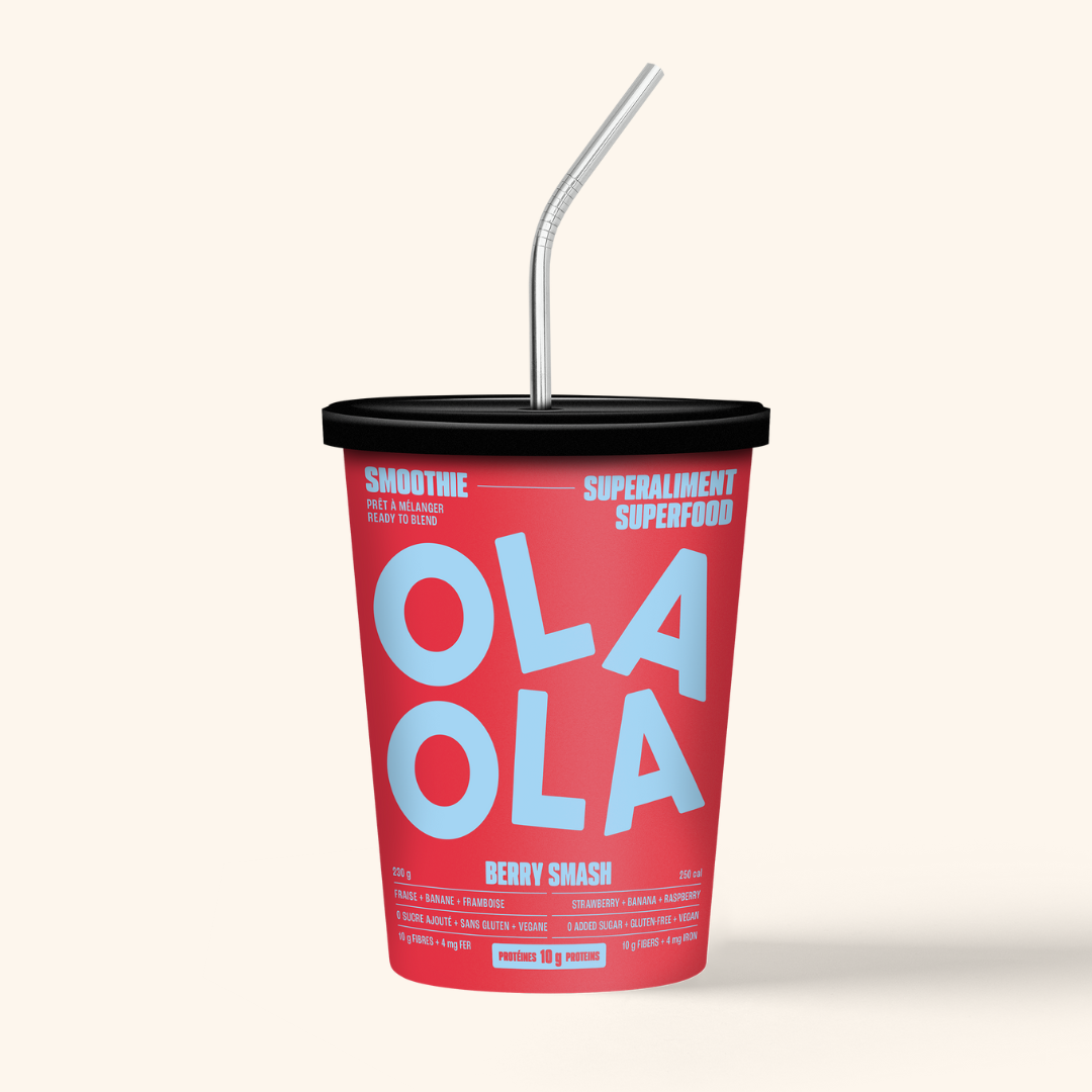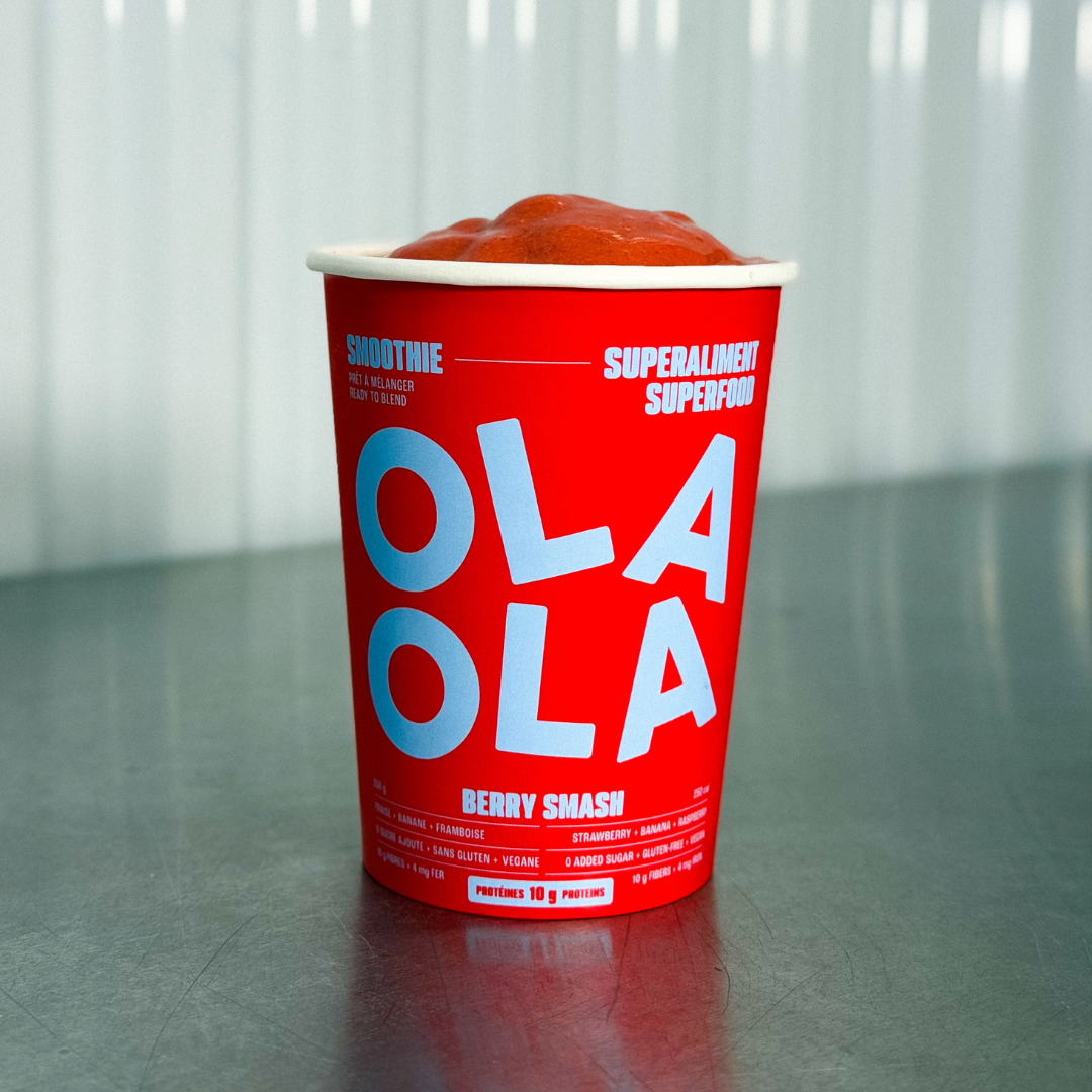 Des fraises entières, des petits fruits ou encore des bananes soigneusement découpées et surgelées après avoir été récoltées. Nos fruits conservent ainsi la totalité de leurs vitamines et nutriments afin de faire des smoothies OLAOLA un vrai plus pour ta santé au quotidien.