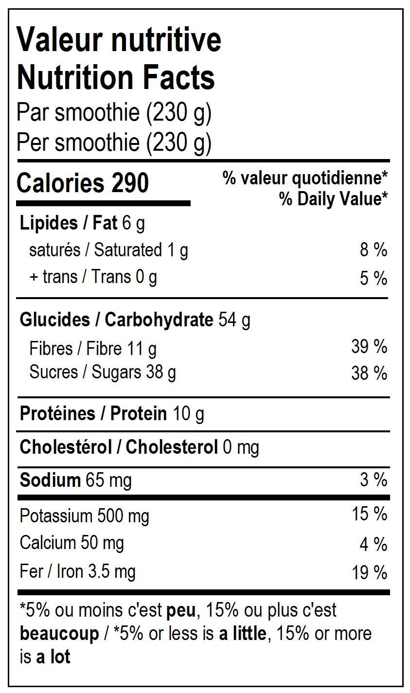 Pour une expérience optimale, nous te conseillons de mélanger ton smoothie avec du jus de pomme, lait ou lait végétal.
